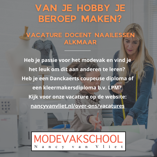 Wij zijn op zoek naar docent(en) voor het lesgeven aan onze naailessen beginners en gevorderden groepen/ naailessen met patroontekenen.